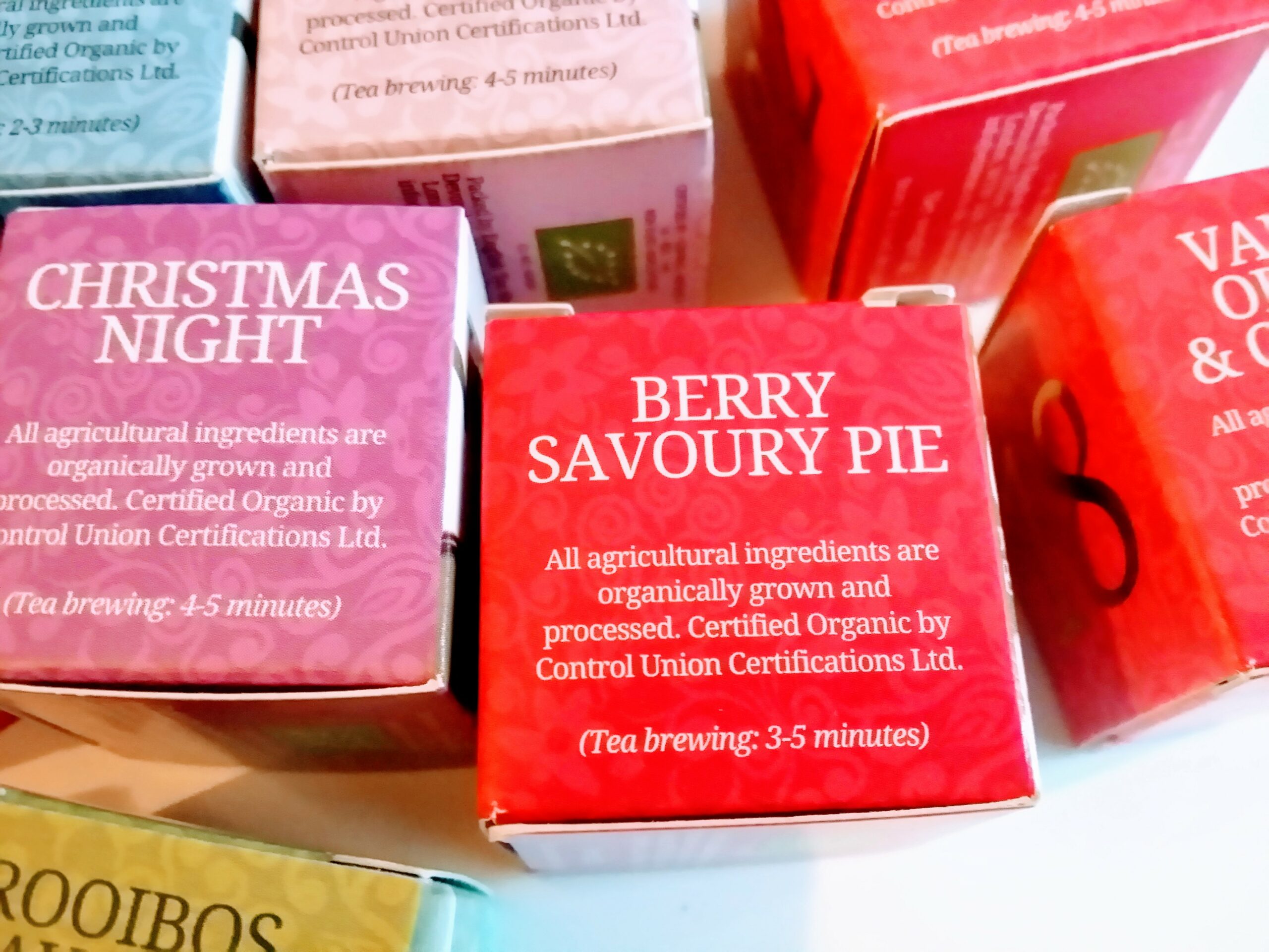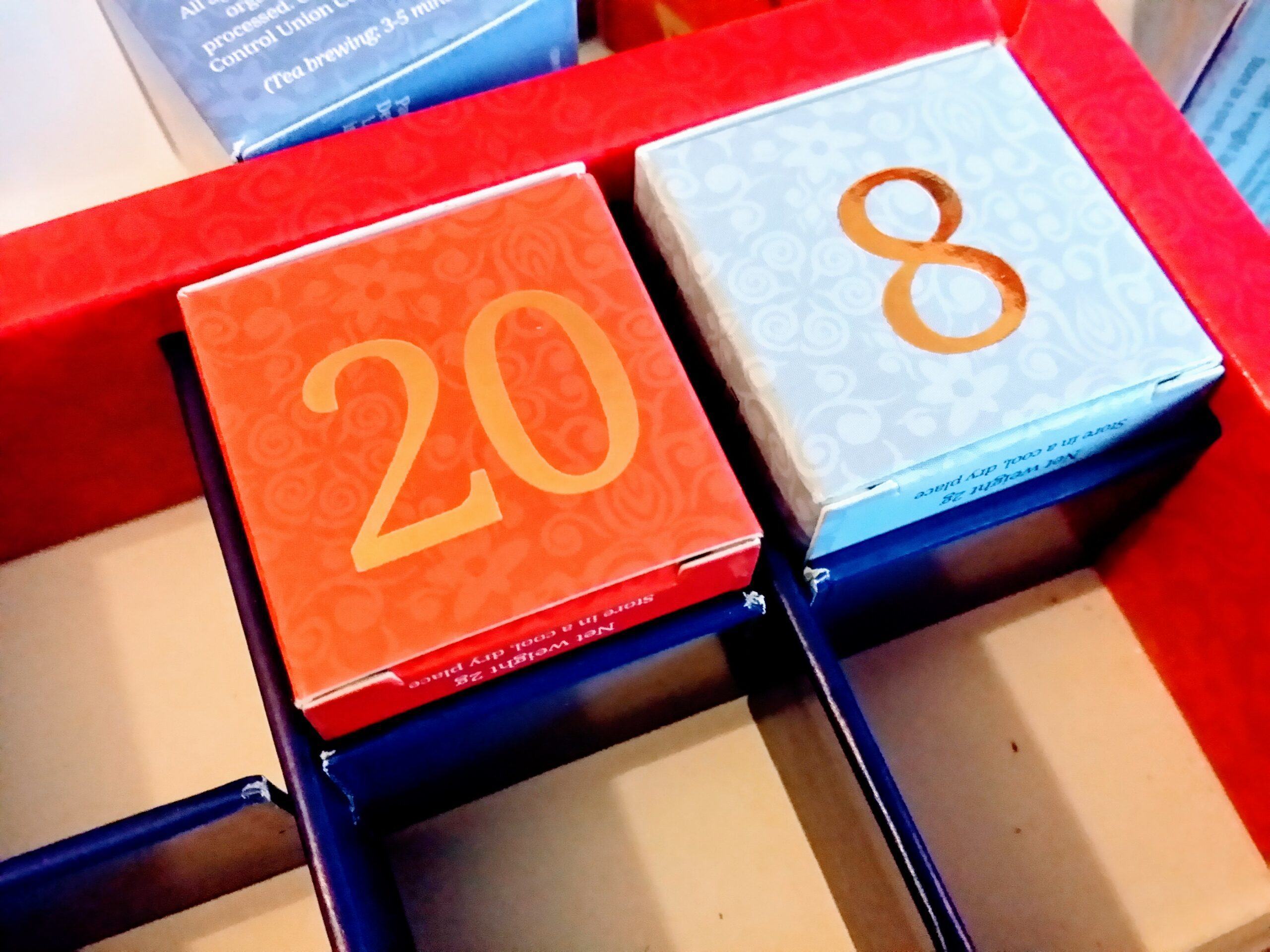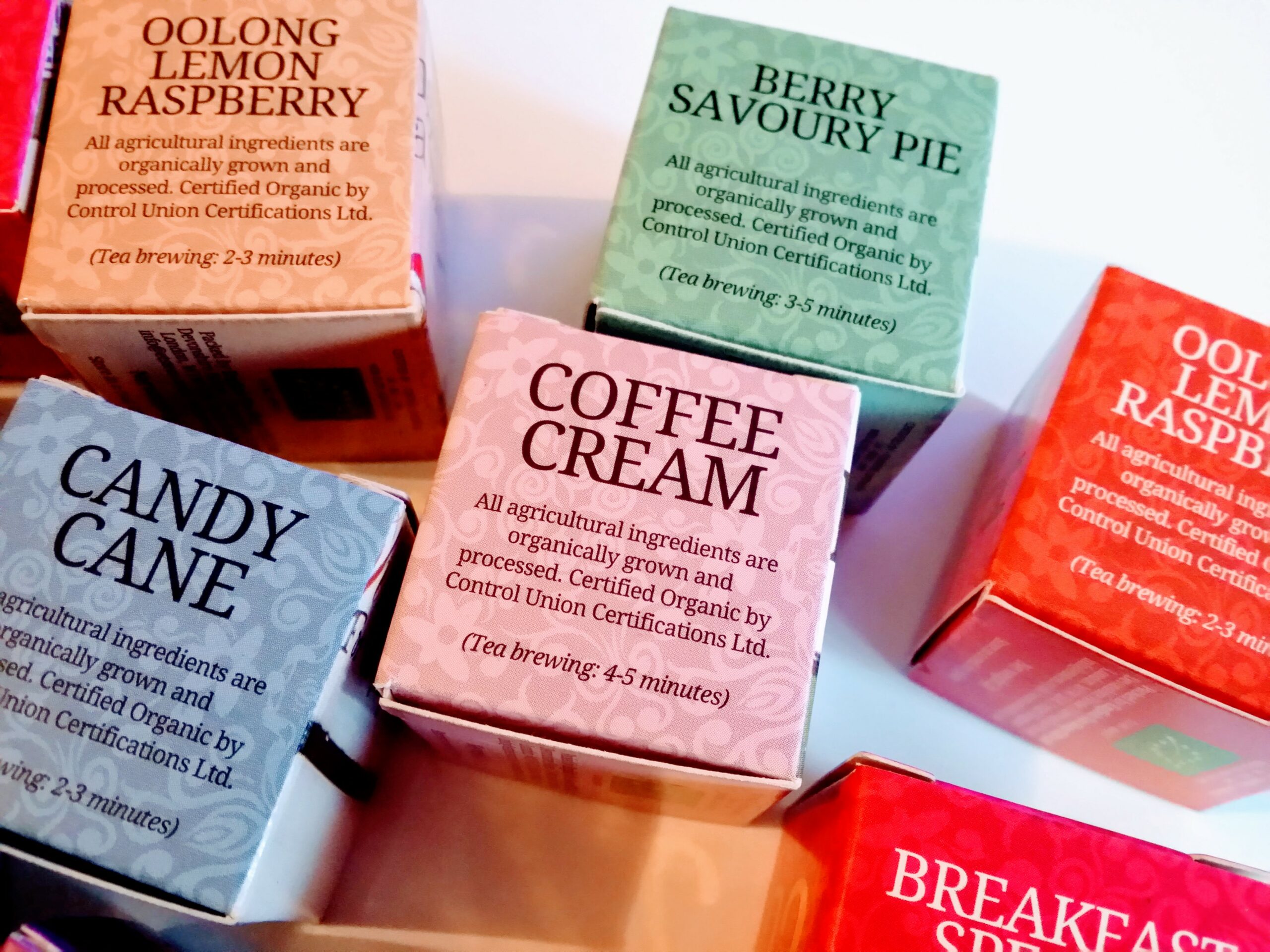 Folgende Sorten könnt ihr im Adventskalender finden: 2x Christmas Cake, 2x White Winter, 2x Berry Savoury Pie, 2x Candy Cane, 2x Coffee Cream, 2x Lapsang Blossom, 2x Oolong Lemon Raspberry, 2x Moroccan Spice, 2x Vanilla Orange, 2x Chrismas Night, 2x Breakfast Special, 2x Gingerbread Man und 1x Rooibos Savoury Blend.