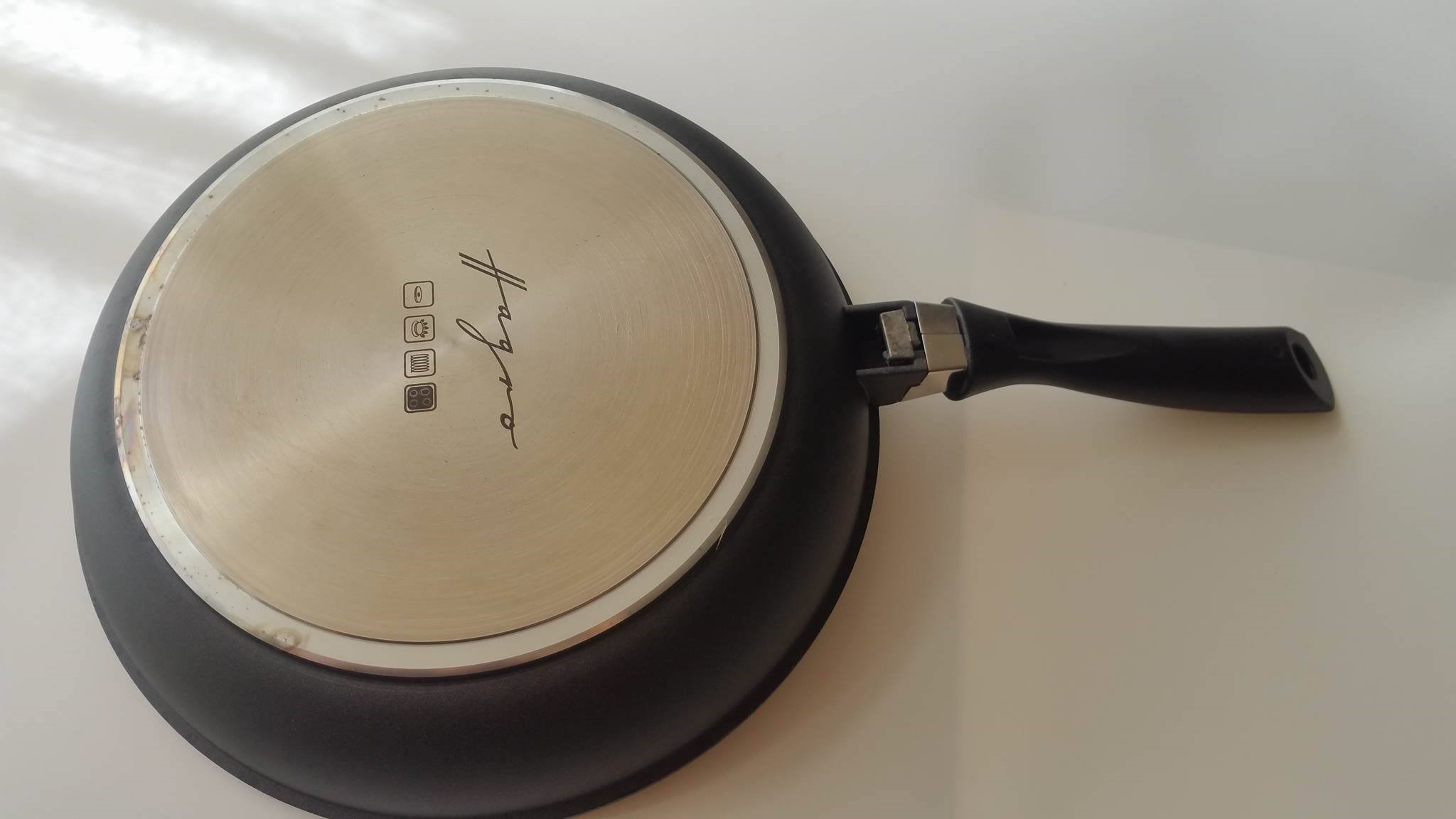 Die Maße der Bratpfanne: Durchmesser ist 28 cm, der Vollinduktions-Boden ist 5.0 mm dick, sie ist 6 cm hoch und wiegt 1,2 Kg. Ein Fliegengewicht im Gegensatz zu meiner vorigen. Die Bratpfanne ist für Induktionsherd, Gasherd und Elektroherd geeignet. Dazu ist sie noch Spülmaschinenfest. Da sie sich aber auch sehr leicht reinigen lässt, muss man die Bratpfanne nicht immer in die Spülmaschine stecken.