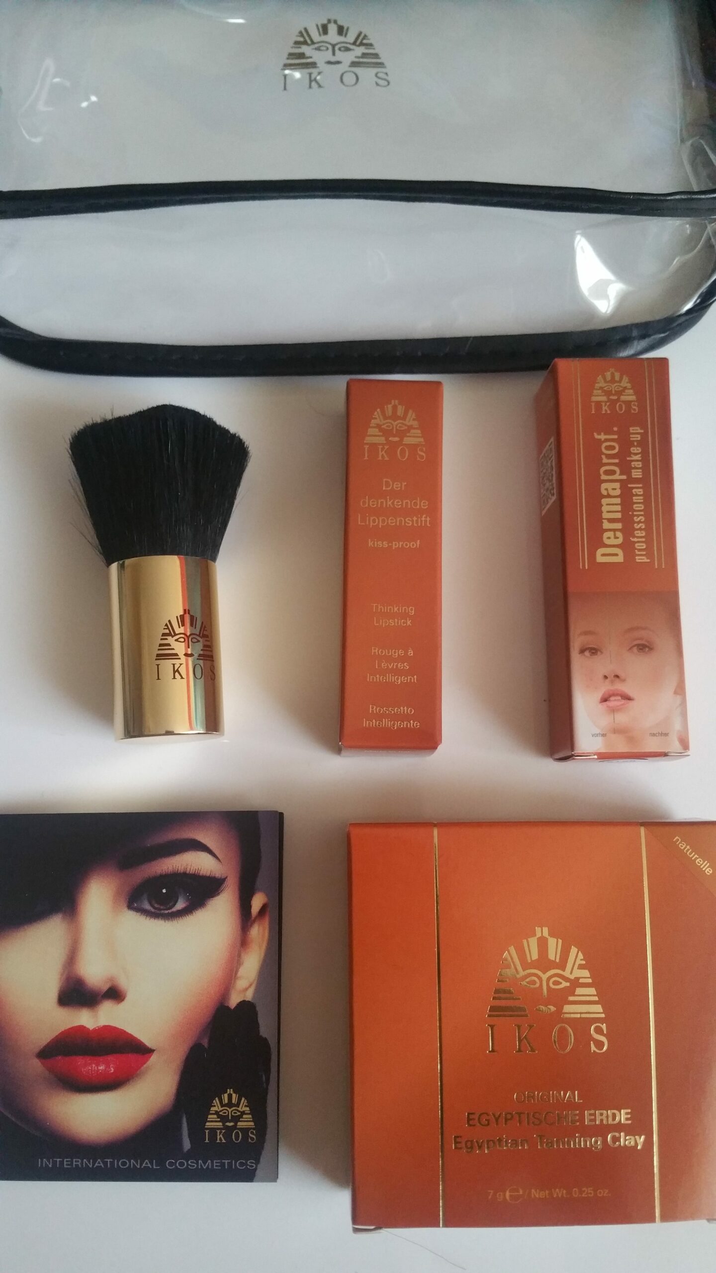 Ich bekam dieses kleine süße Täschchen gefüllt mit IKOS Dermaprof-Complete Set mit Pinsel und einem deckenden Lippenstift in weiß der zaubern kann.