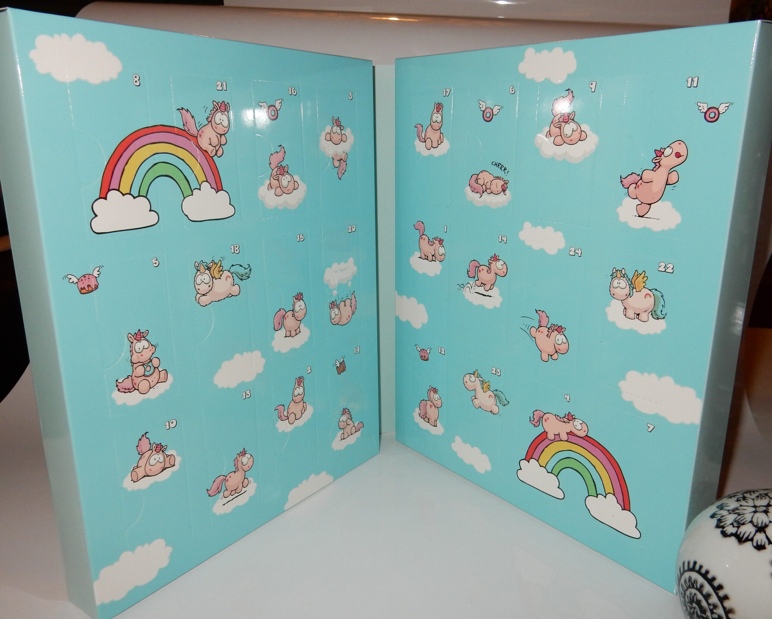 Nun zeige ich euch erstmal den wunderbaren super niedlichen Einhorn – Adventskalender. Auch ich bin dir ein Einhorn Hype verfallen und kann mich schwer davon loseisen. Jedesmal wenn ich was mit Einhorn sehe muss ich mir das erst mal genau angucken. Klar ist es nicht mehr so intensiv wie am Anfang aber wenn ich dann so ein Adventskalender sehen dann habe ich einfach nur Herzchen in den Augen.