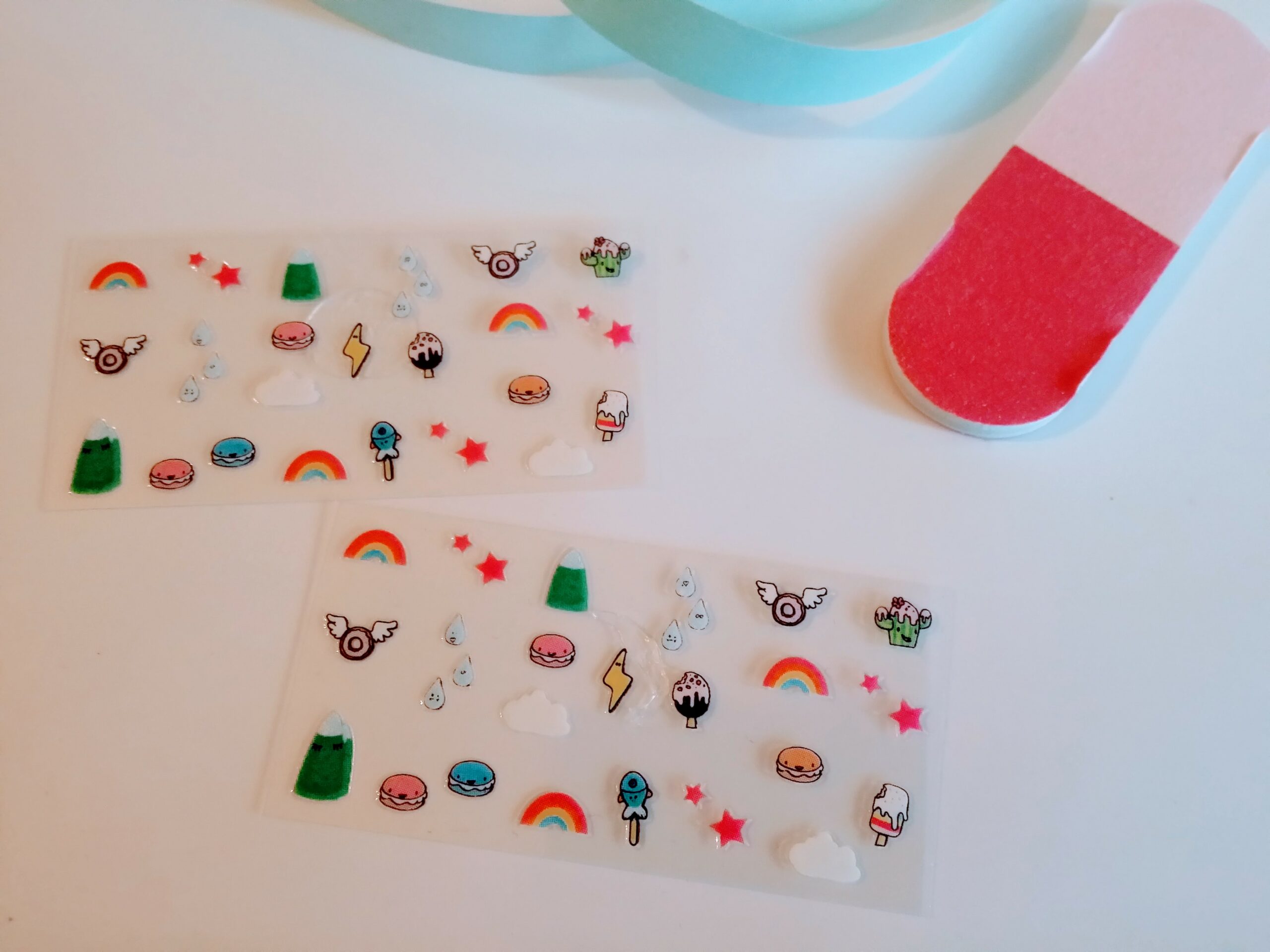1x Spiral – Haargummi; 3x Perlen für Nagellack; 1x Strasssteine; 1x Nagelfeile; 6x Nagellack; 2x Nagelaufkleber